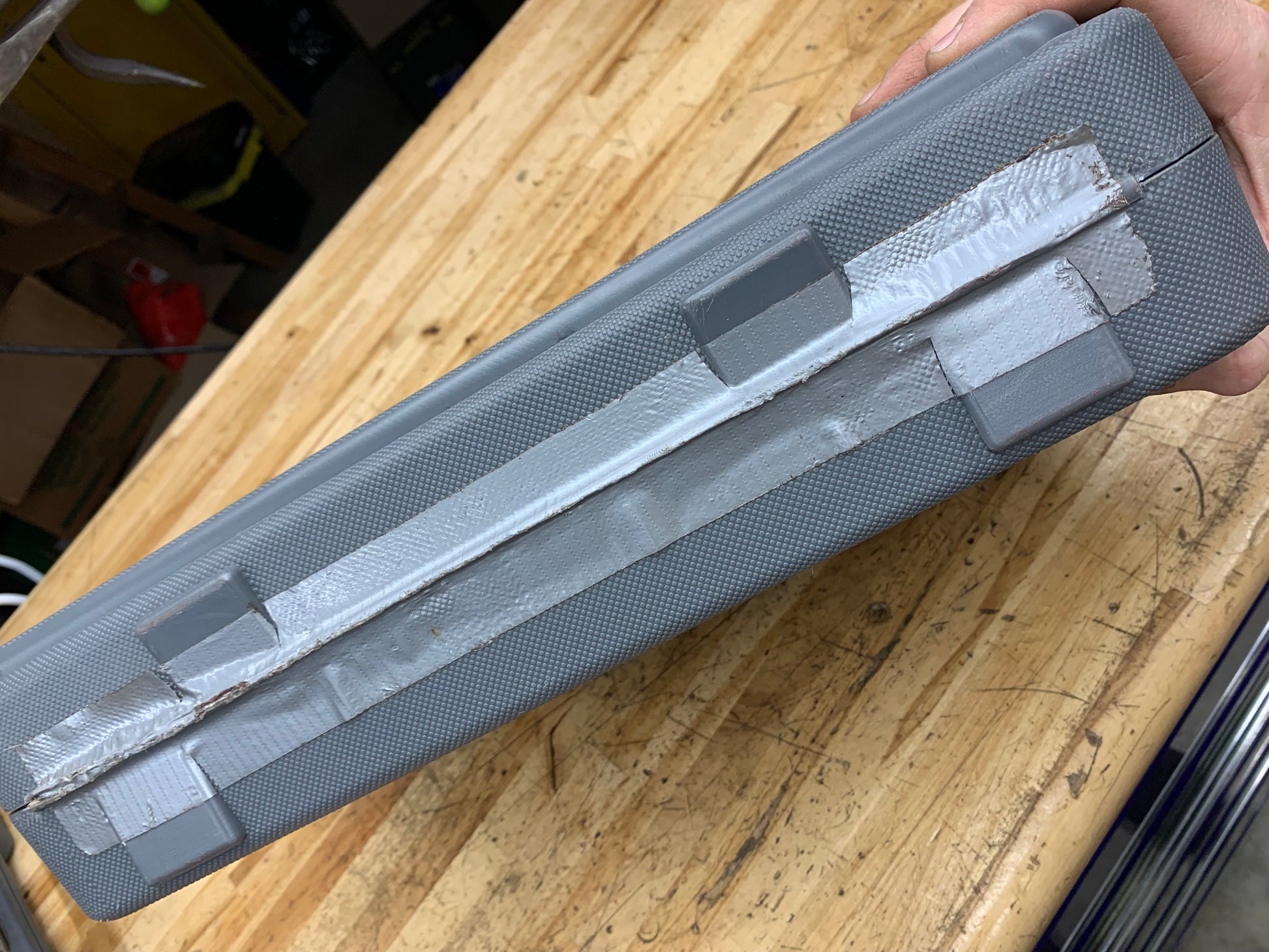 The case hinge is cracked, and reinforced with duct tape (it's held strong for 2 years service in my work toolbox this way)