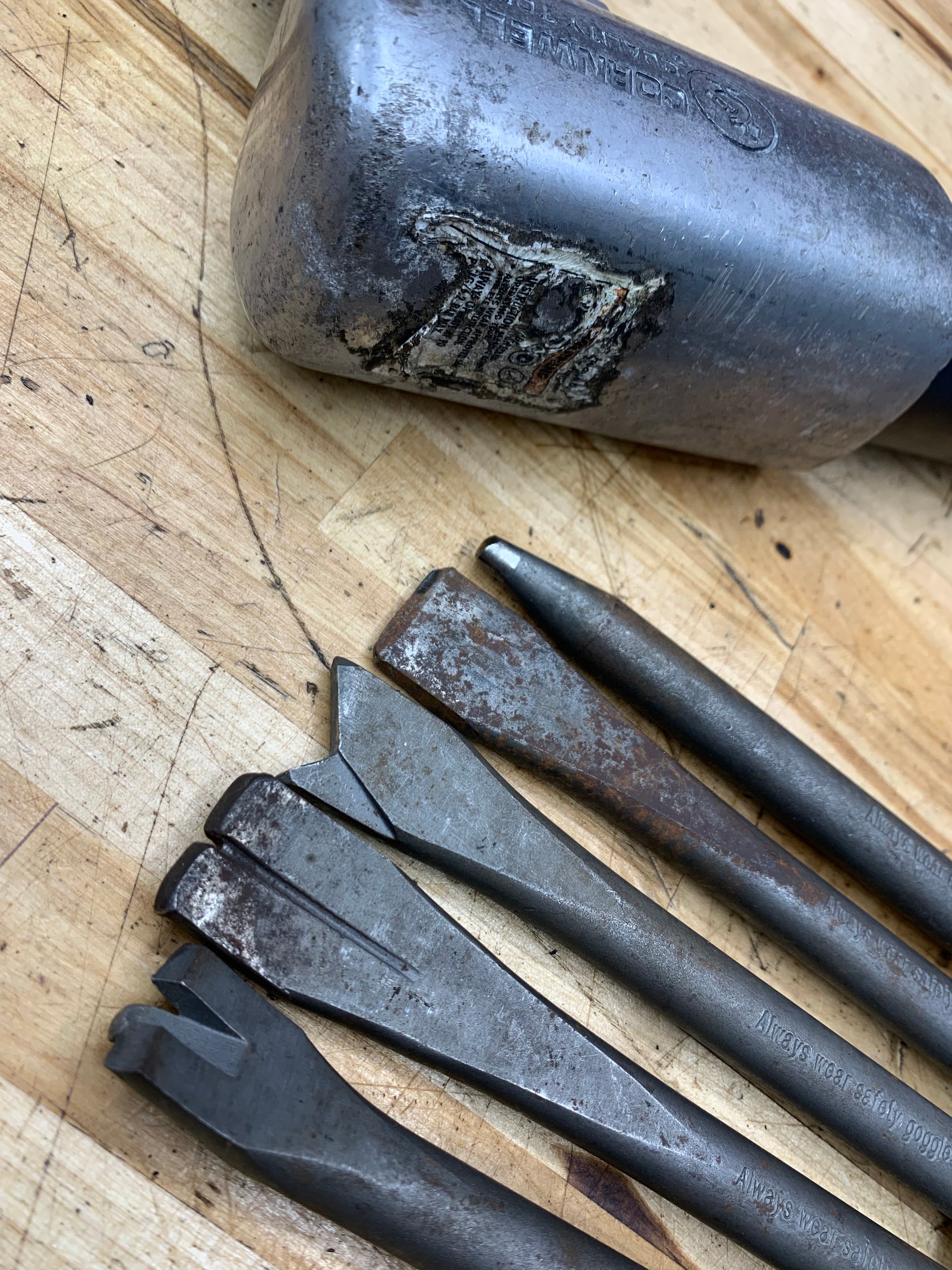 The tool and bits are in good used condition. The hammer works great, complete with Cornwell brand spring lock chuck.