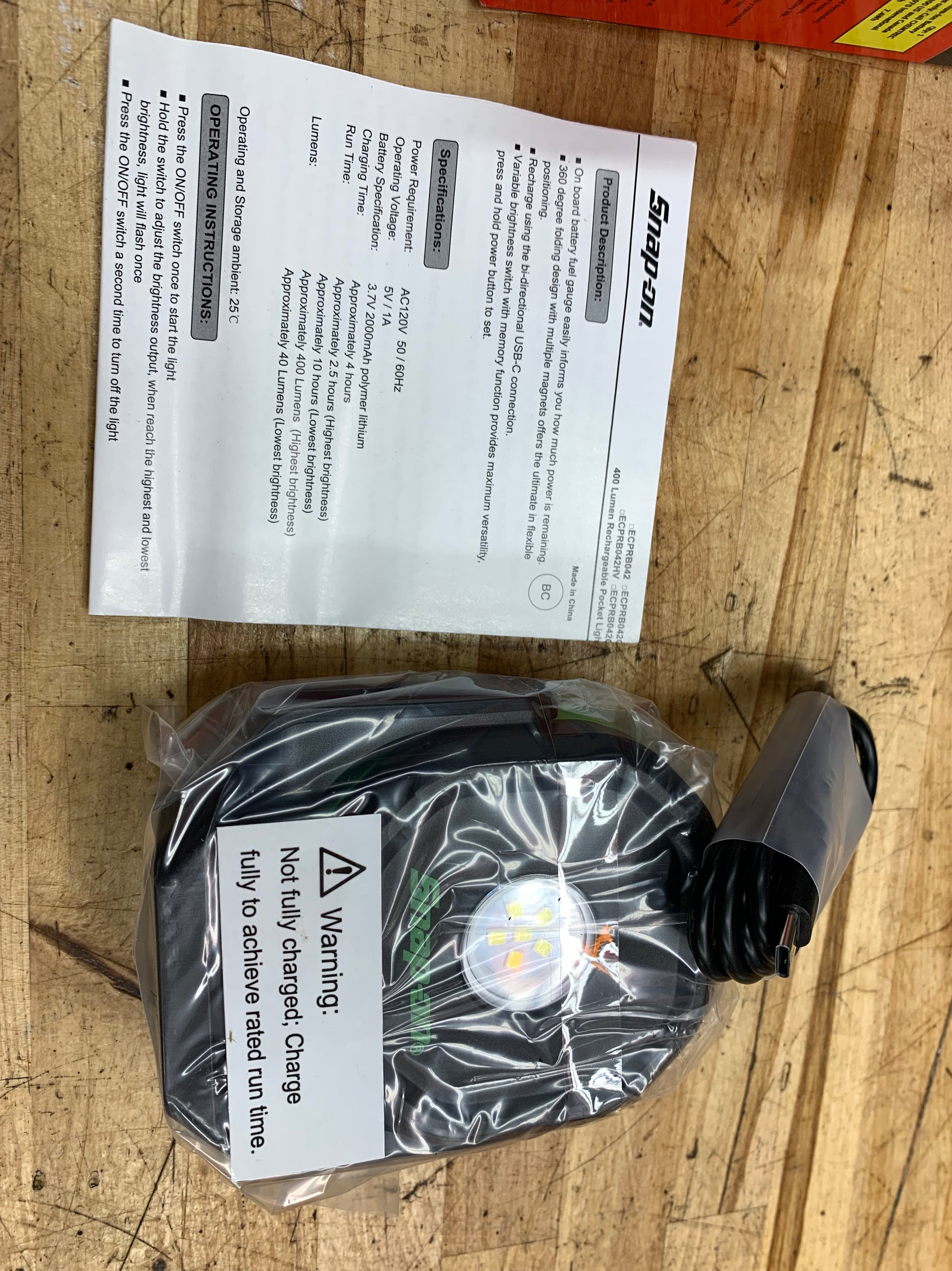 For sale is a green Snap On magnetic work light. It’s comes with a charging cable, magnetic base, and pivot adjustment.