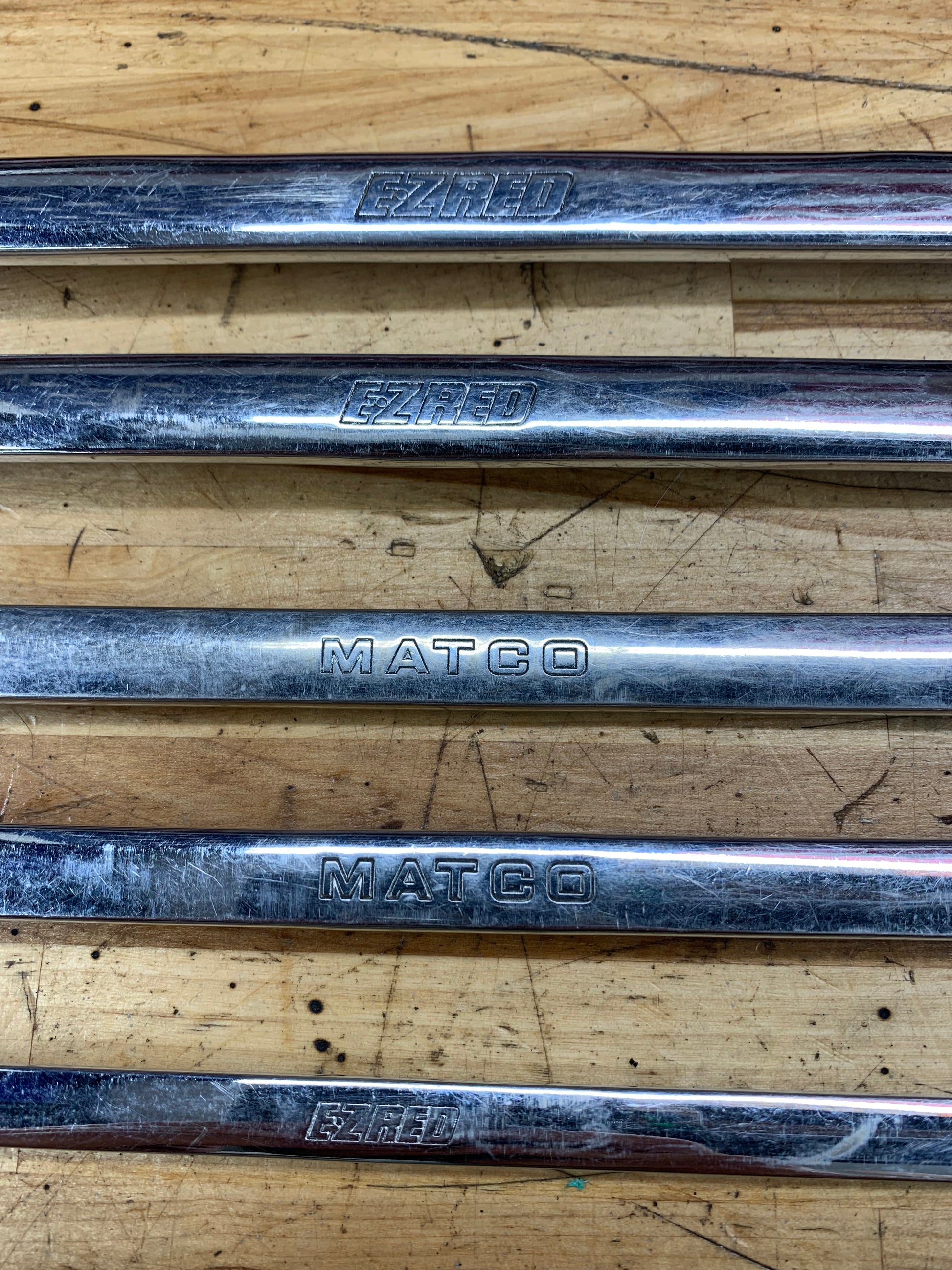 3 of the wrenches are EZ Red brand, 2 are Matco brand.