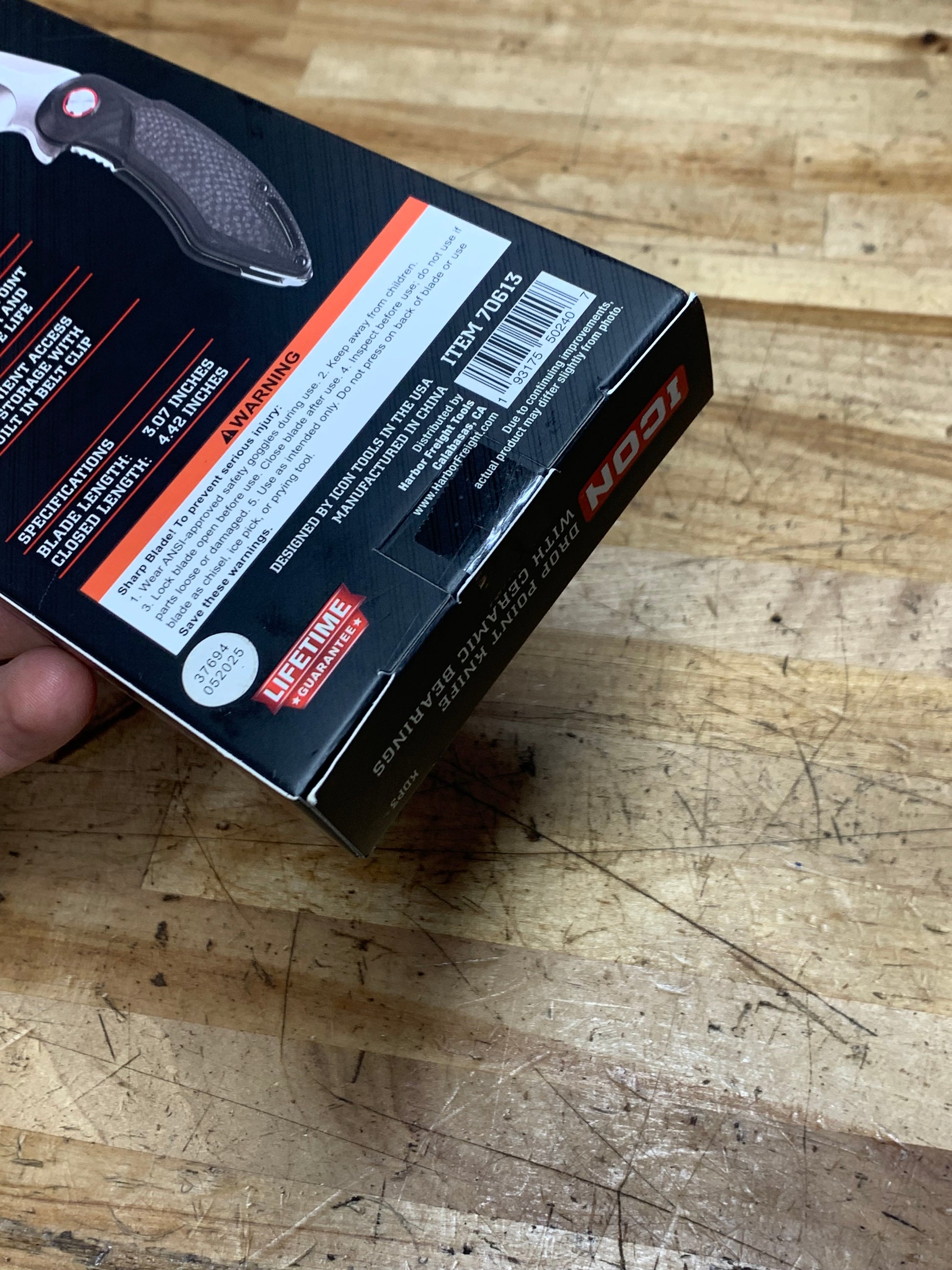 For sale is an Icon pocket knife with G10 grips, and ceramic bearings. The knife is brand new, in unopened box.