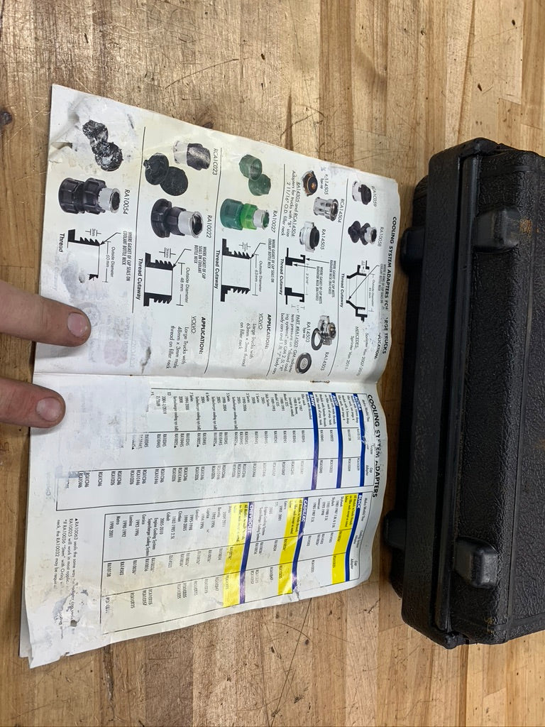 For sale is a large truck cooling system adapter set by Mac tools. It's in good used condition. Comes with case and info sheet.