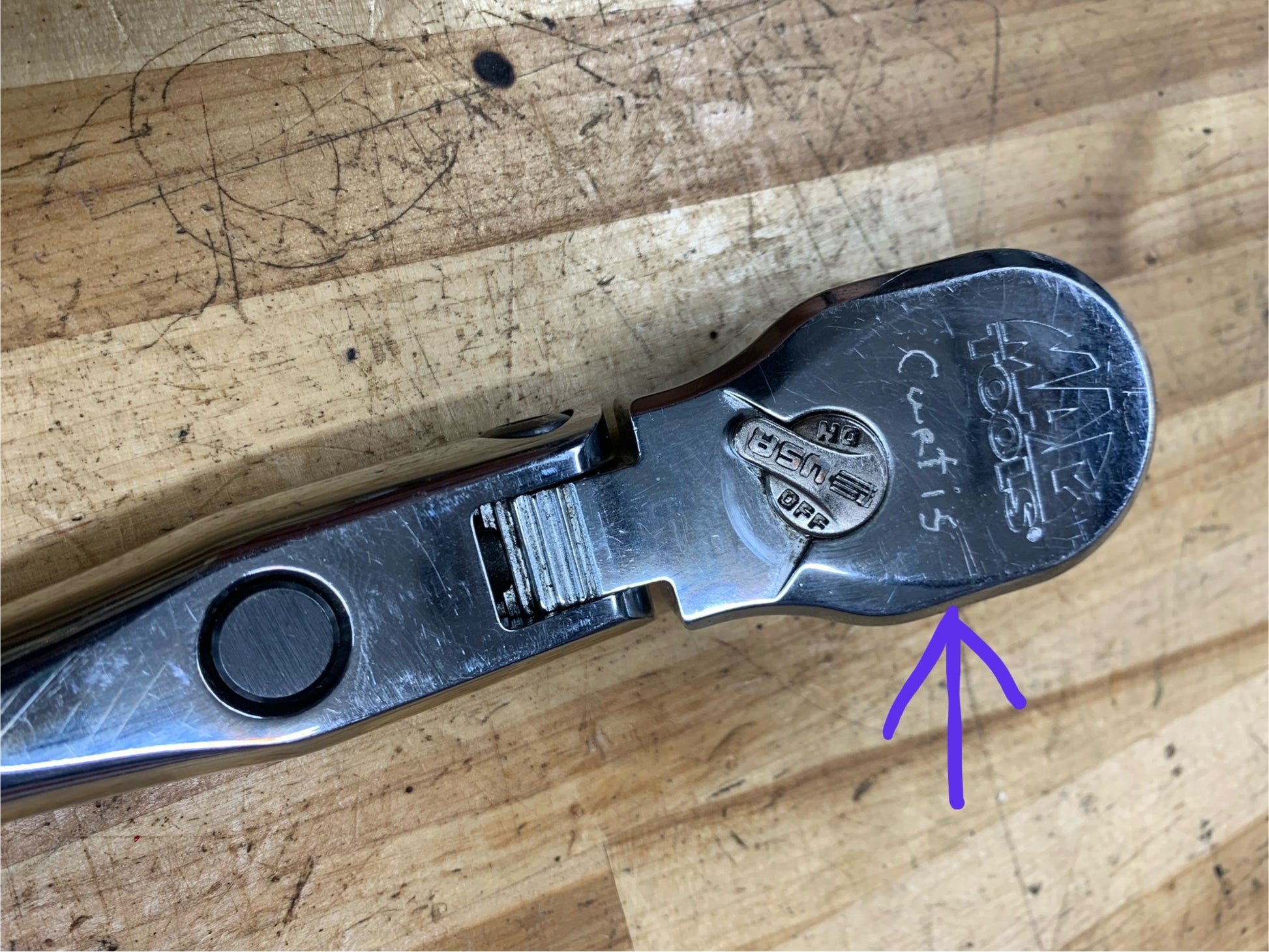 For sale is an extra long Mac Tools USA 1/2" button style locking head ratchet. This fine tooth ratchet works excellent, and has seen little use. It does have a name engraved on the head. Other than that, this tool is in very good used condition.