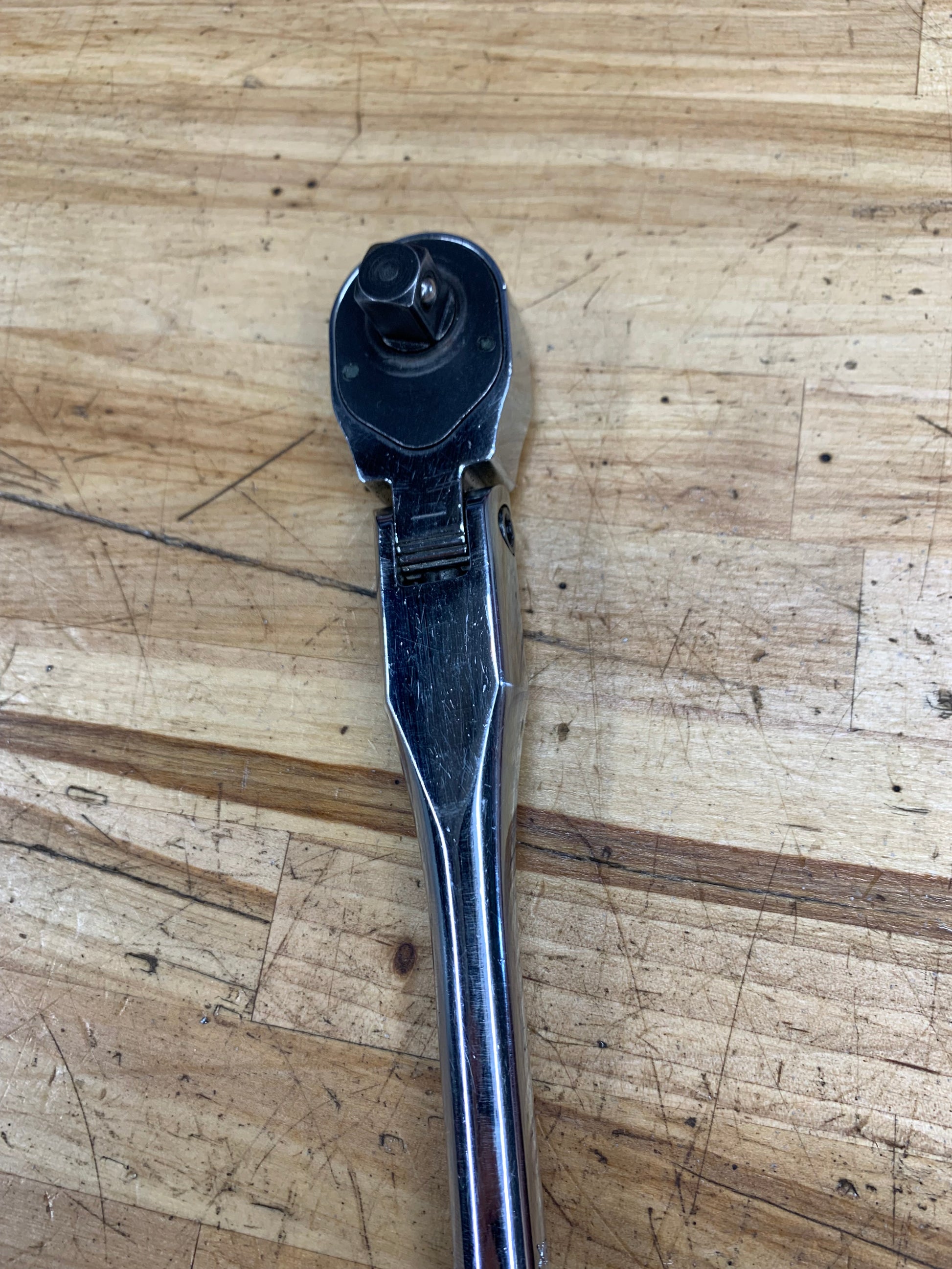For sale is a Mac Tools 3/8" flex head ratchet. The tool is in good used condition. The flex head has a tight lockup, and smooth fine tooth ratcheting action.