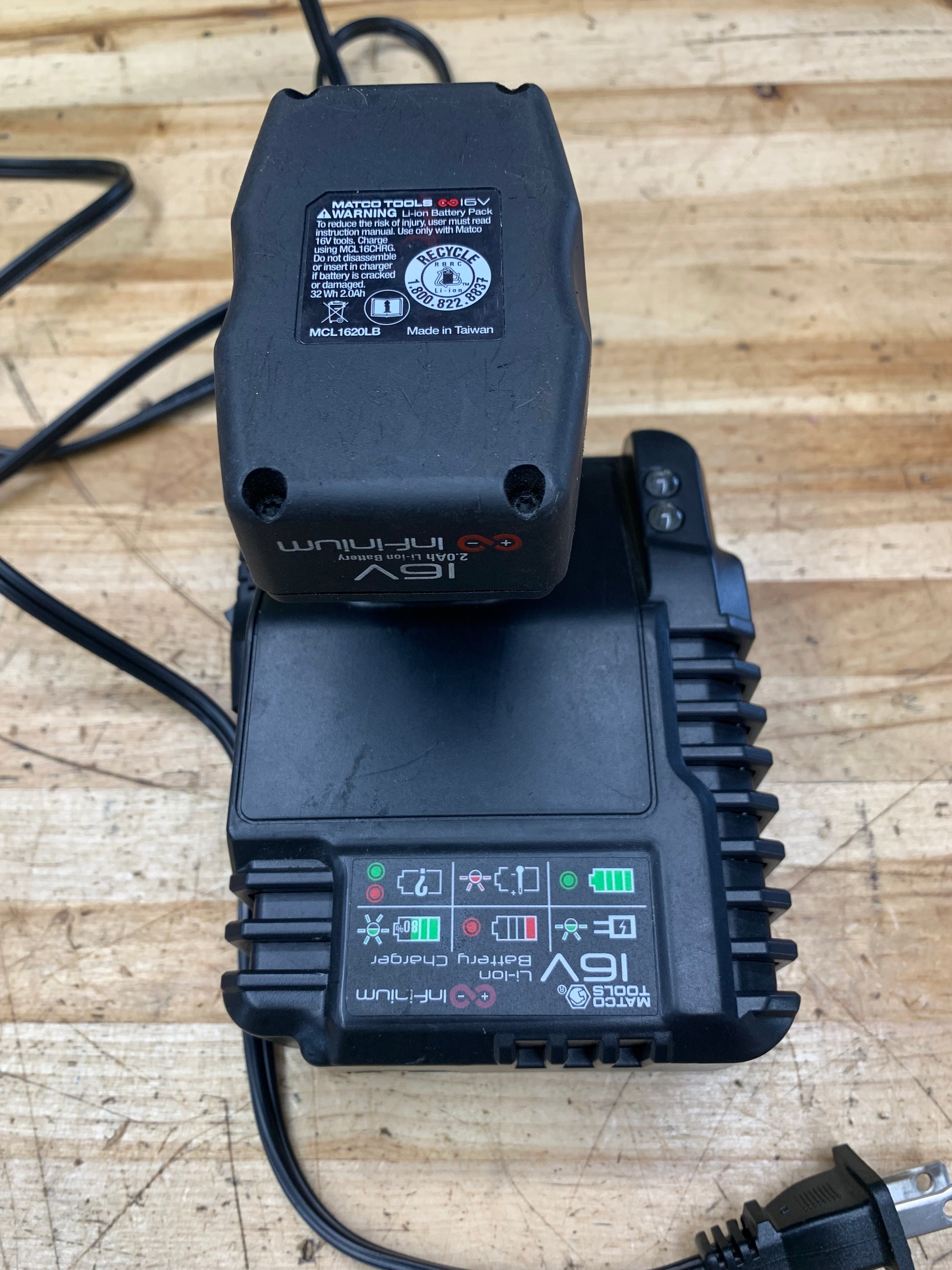For sale is a 16v Matco charger, comes with one 16v battery. The tools are in good working order.