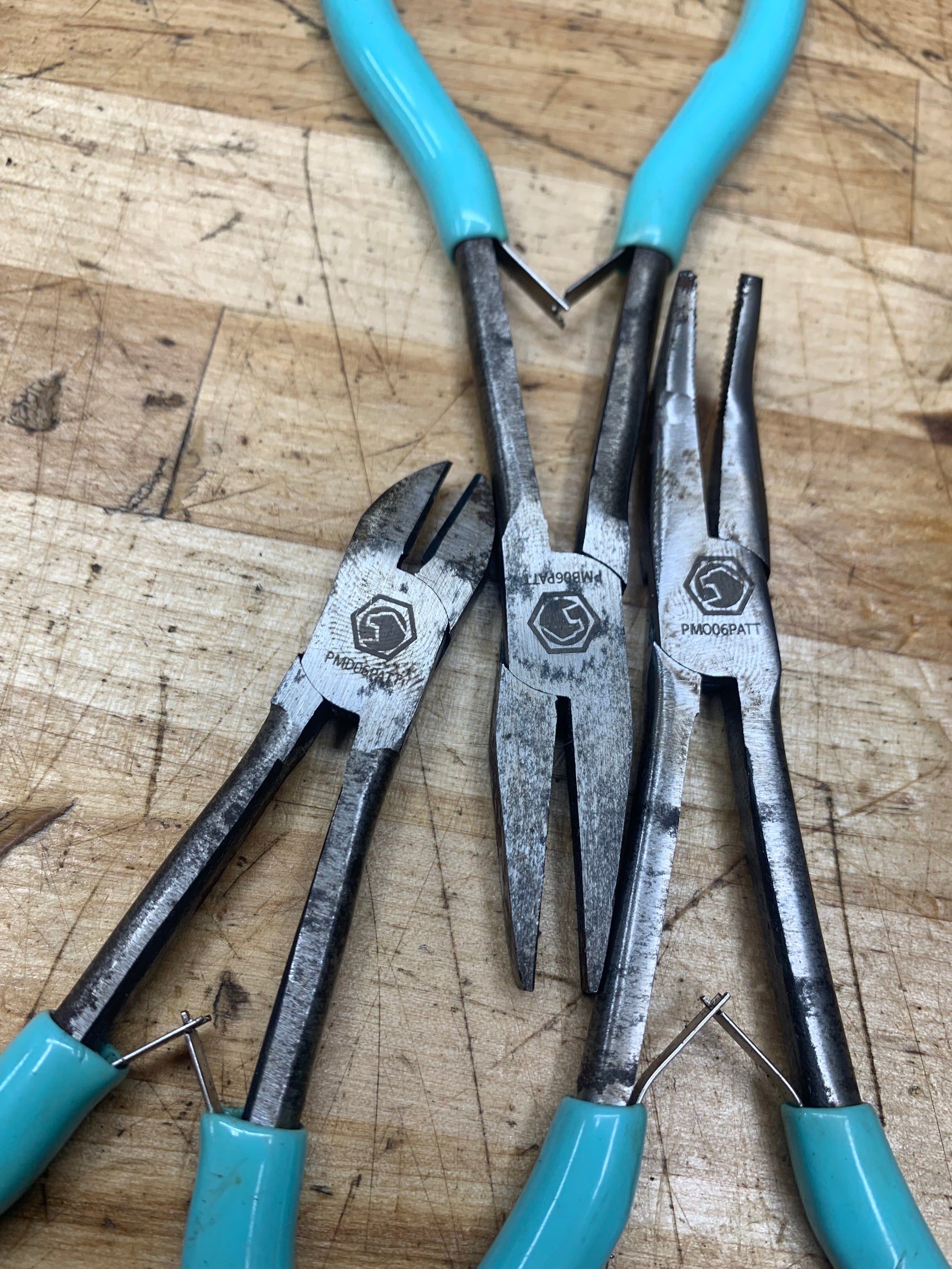 For sale is a 3pc set of Matco long reach mini pliers: needlenose, side cutters, and bent needlenose. All pliers are in good used condition.