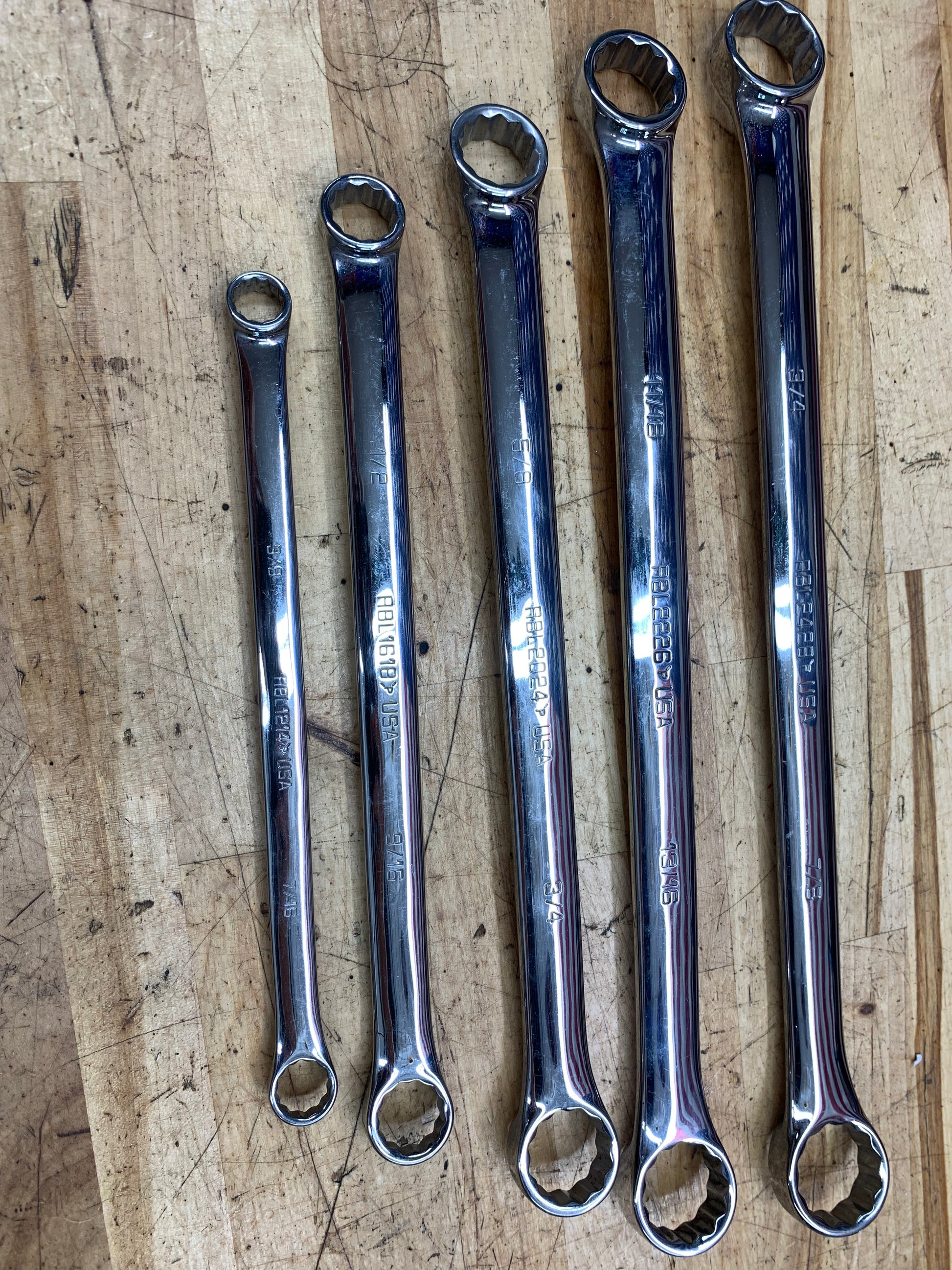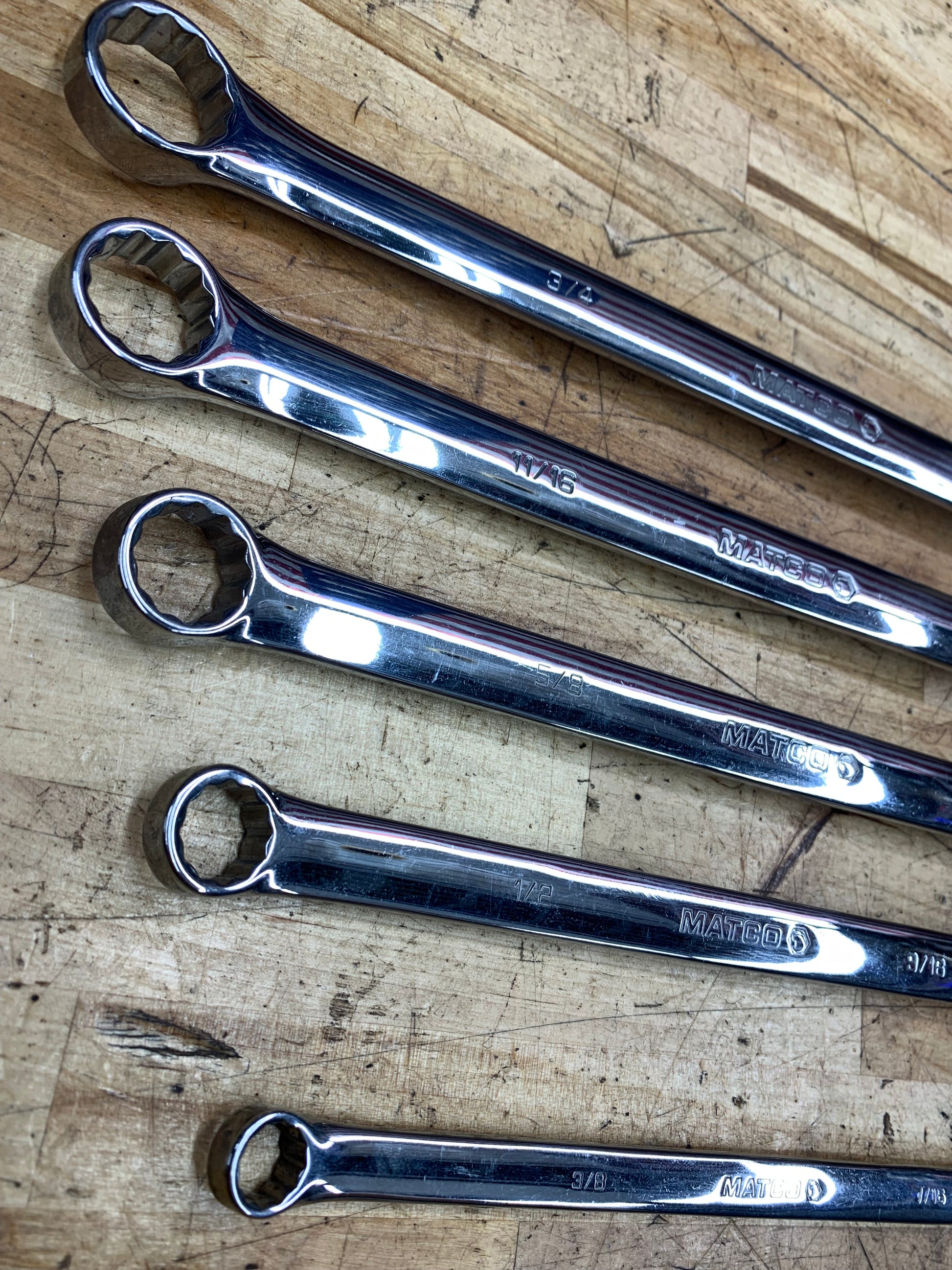 For sale is a 5pc SAE Matco box wrench set. Made in USA. The tools are in good used condition 3/8” thru 7/8”.