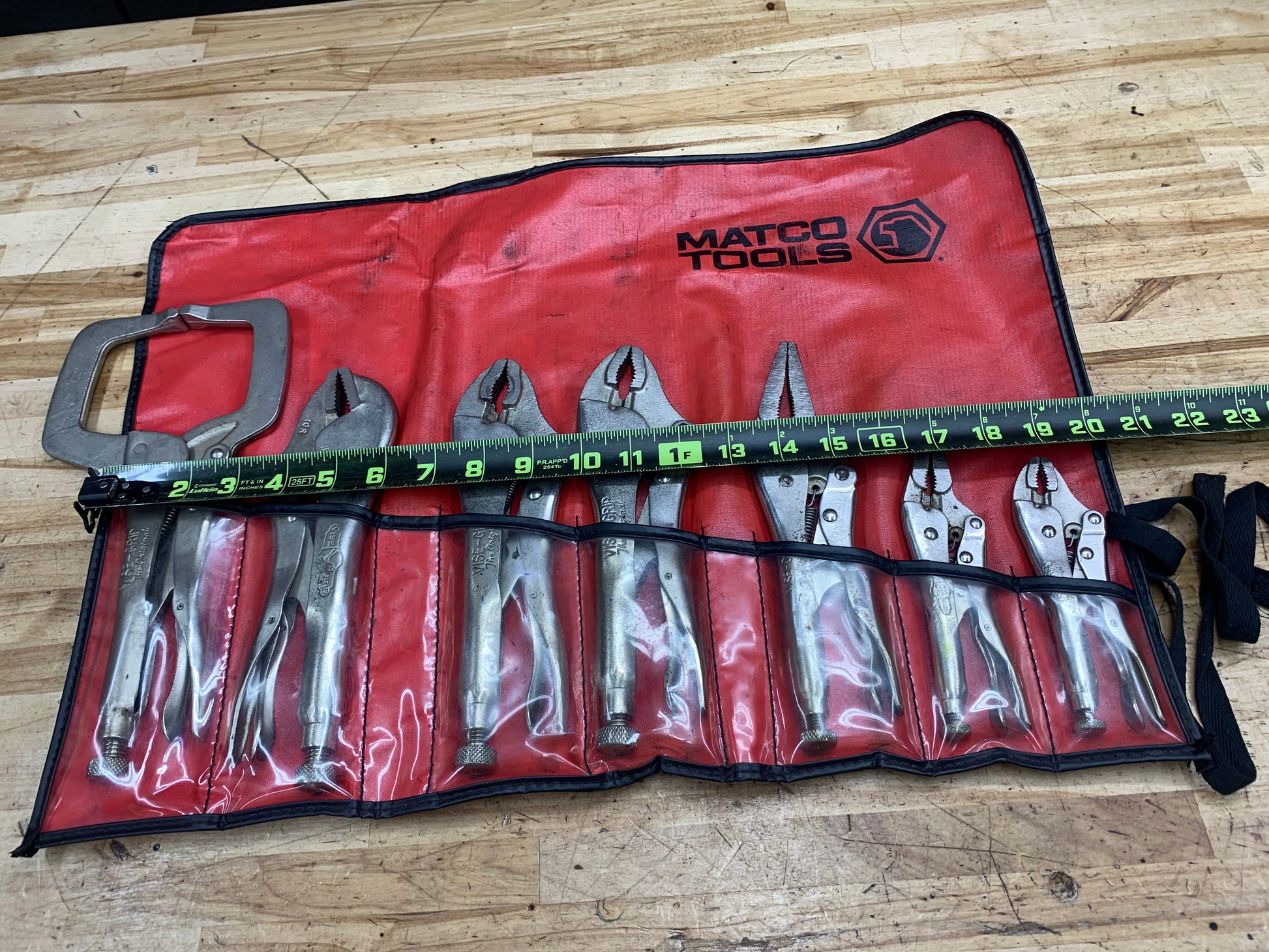 For sale is a 7 piece set of Vise Grips, sold by Matco in a nice canvas pouch.
