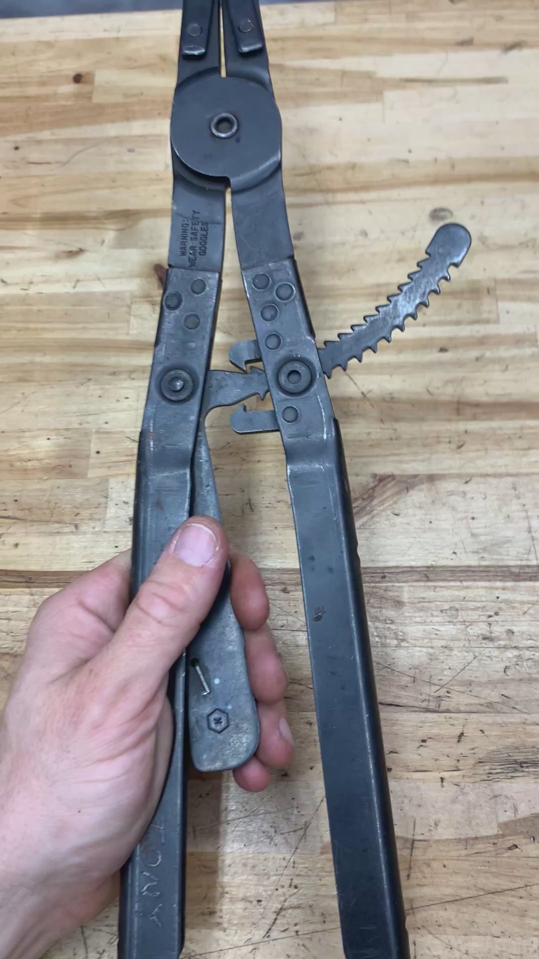 For sale is a Matco XL snap ring pliers, with spring actuated lock. These pliers are used on large snap rings, commonly found in transmission repair. The tool does have a small engraving on the end of one of the handles.