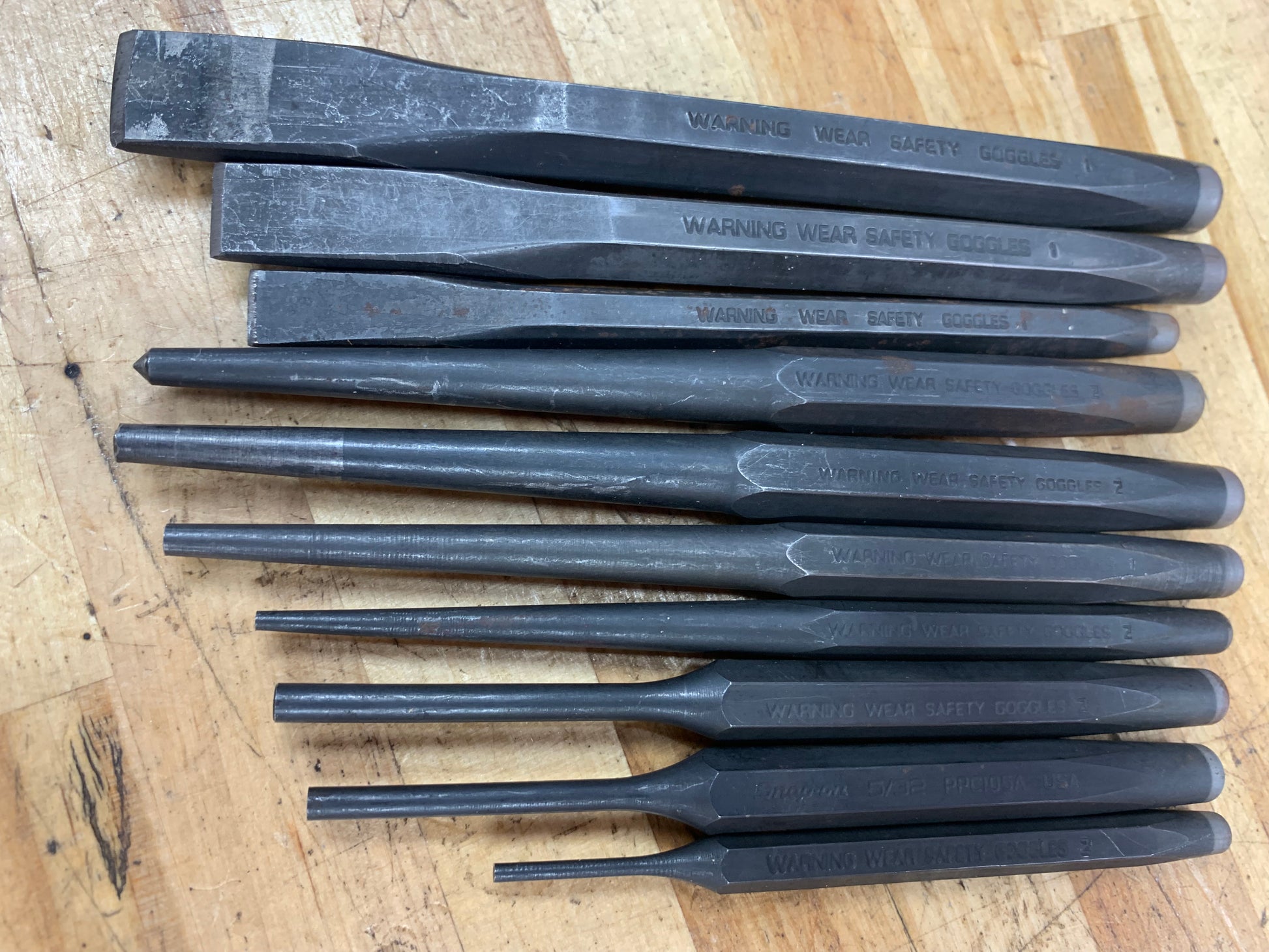 For sale is a Snap On punch and chisel set, 10pc.