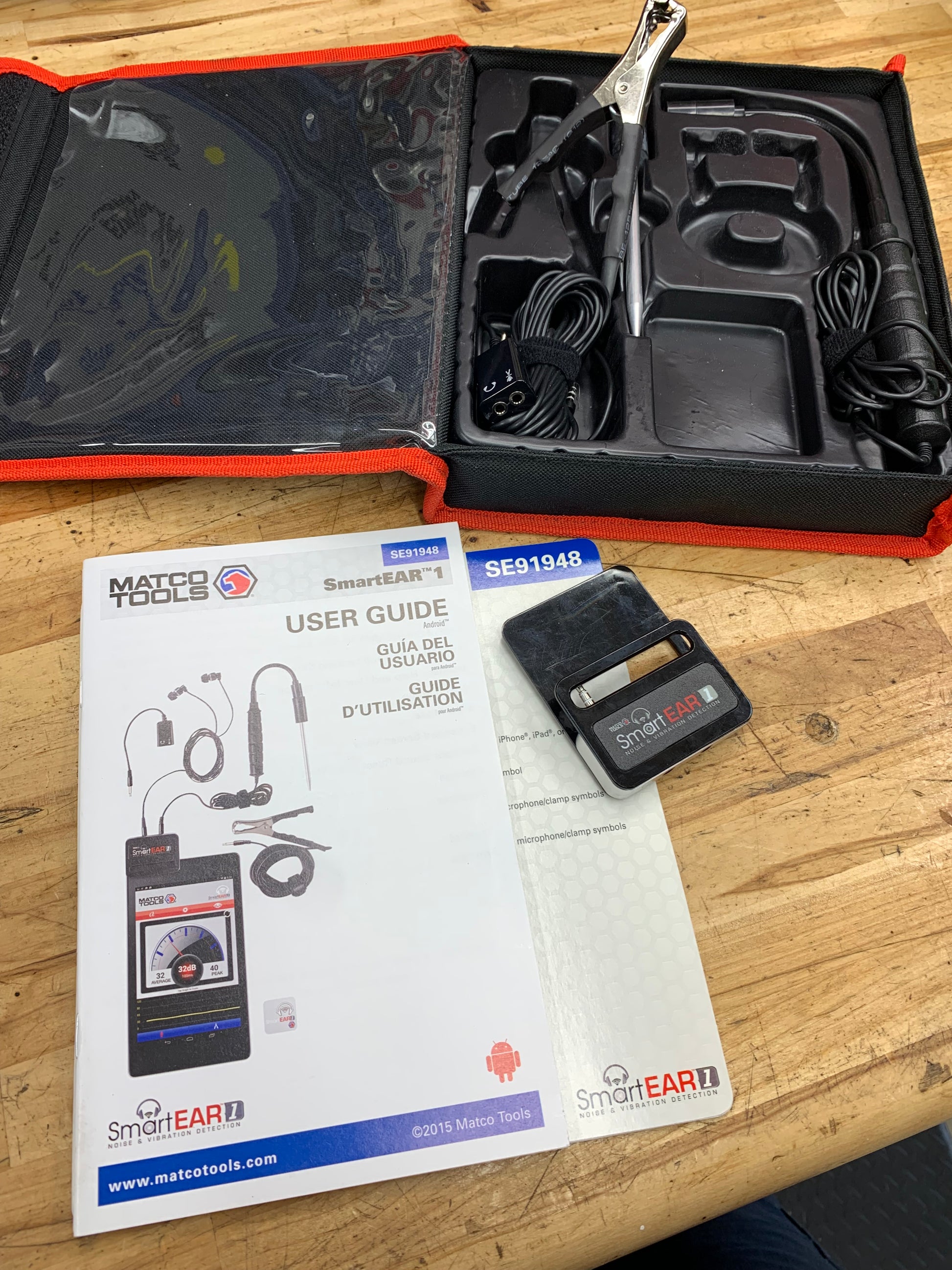 For sale is a Matco Smart Ear. It is essentially an electronic mechanics stethoscope that works through an app on your phone. I have downloaded the app myself, and personally verified the tool works as it should.