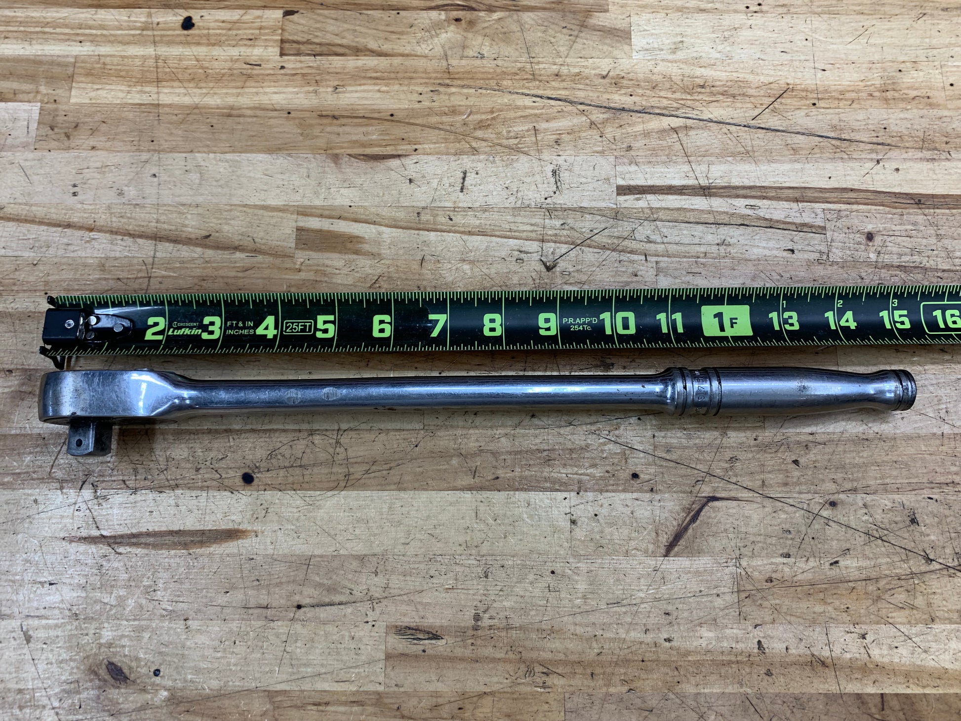 For sale is a Snap On 3/8" long ratchet. There are a couple of small grind marks on the side of the shank. This is a vintage, 1991 model ratchet.