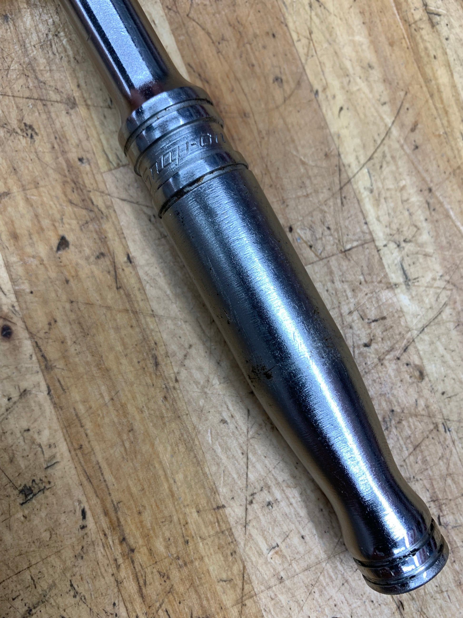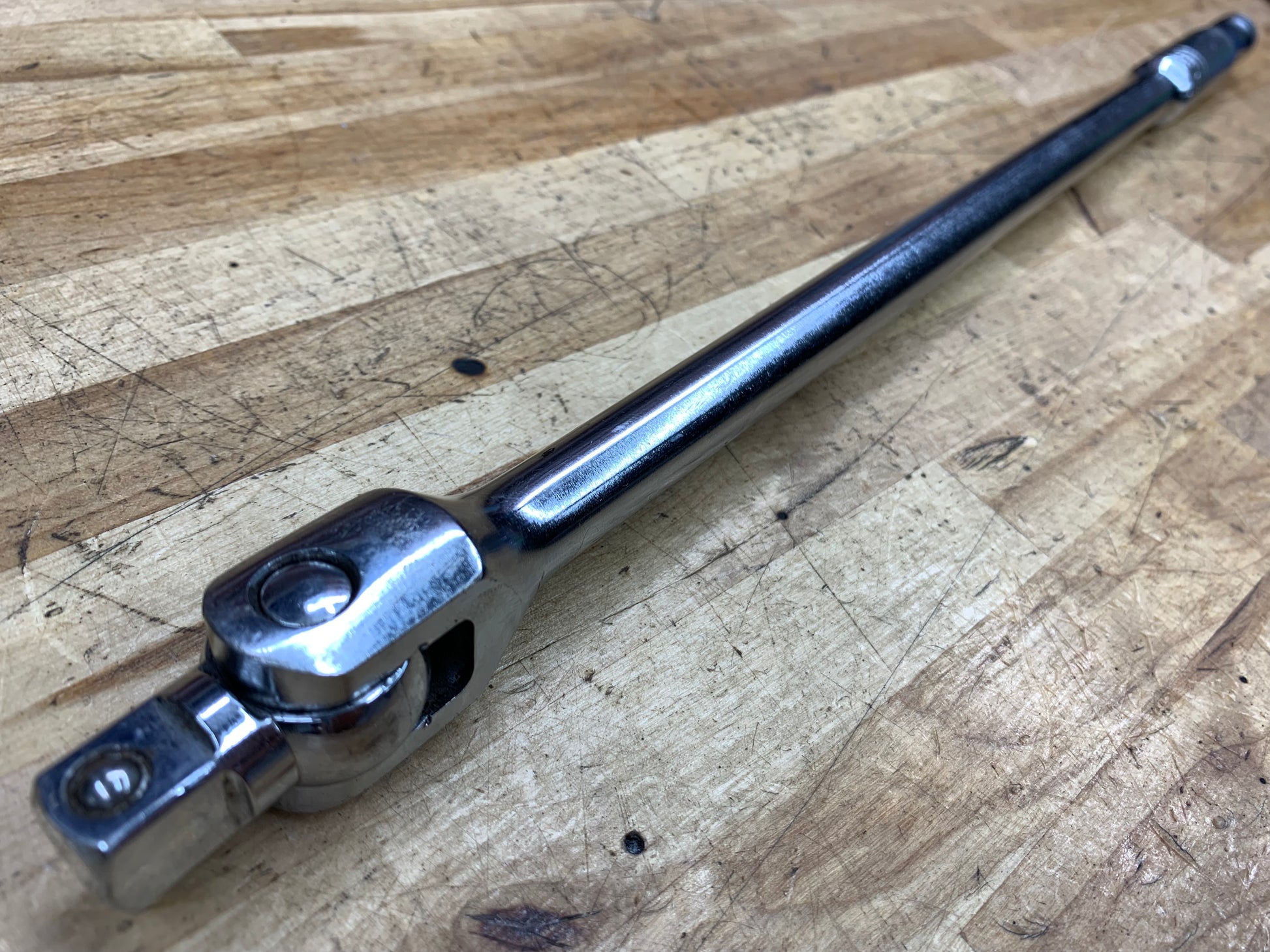 For sale is a Snap On 1/2" breaker bar. The tool is in good used condition. 18" long. The flex square is in good shape, with nice tension and no slop in the action.