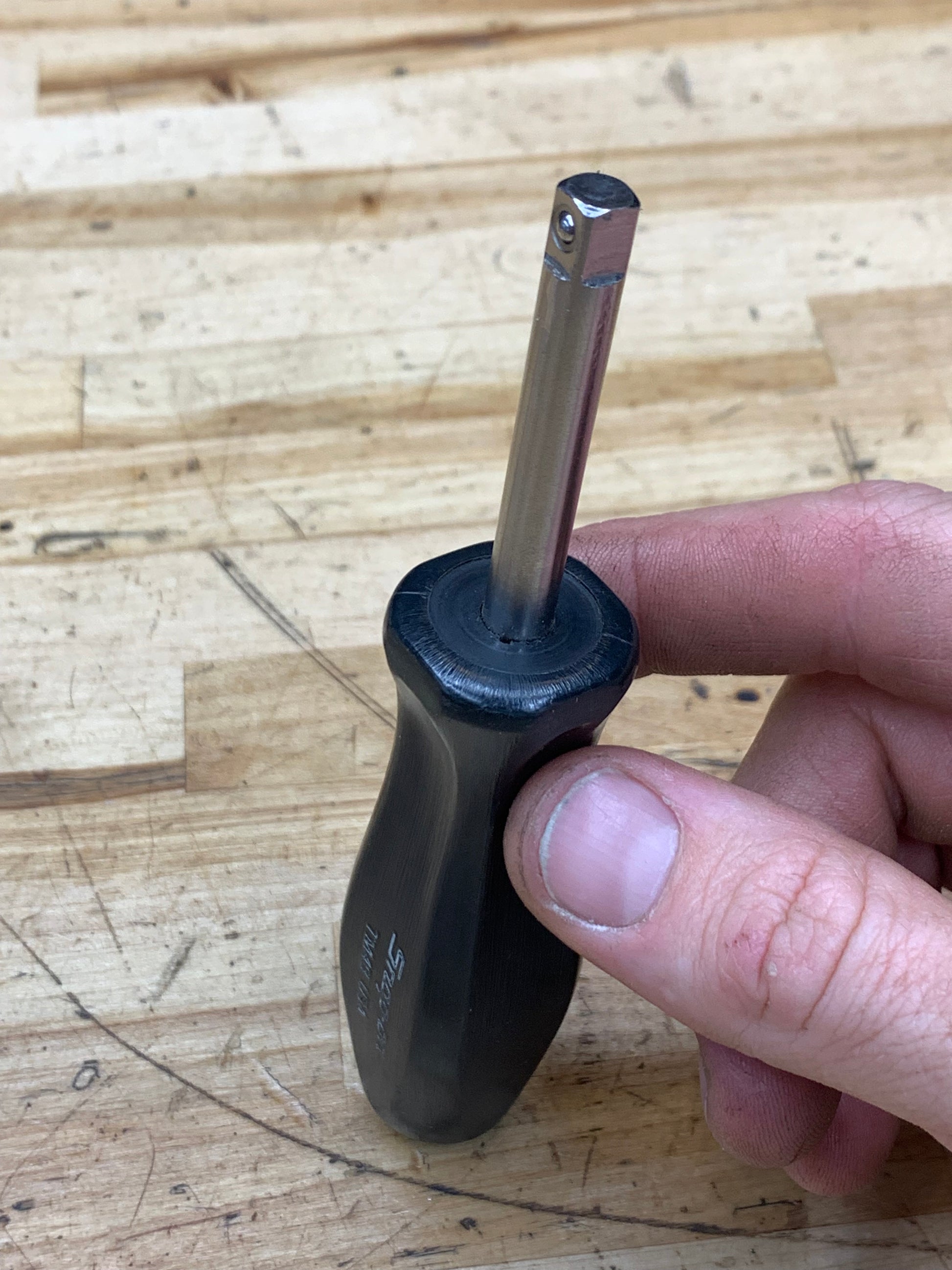 For sale is a Snap On 1/4" hard handle square driver handle. The tool is in good used condition.