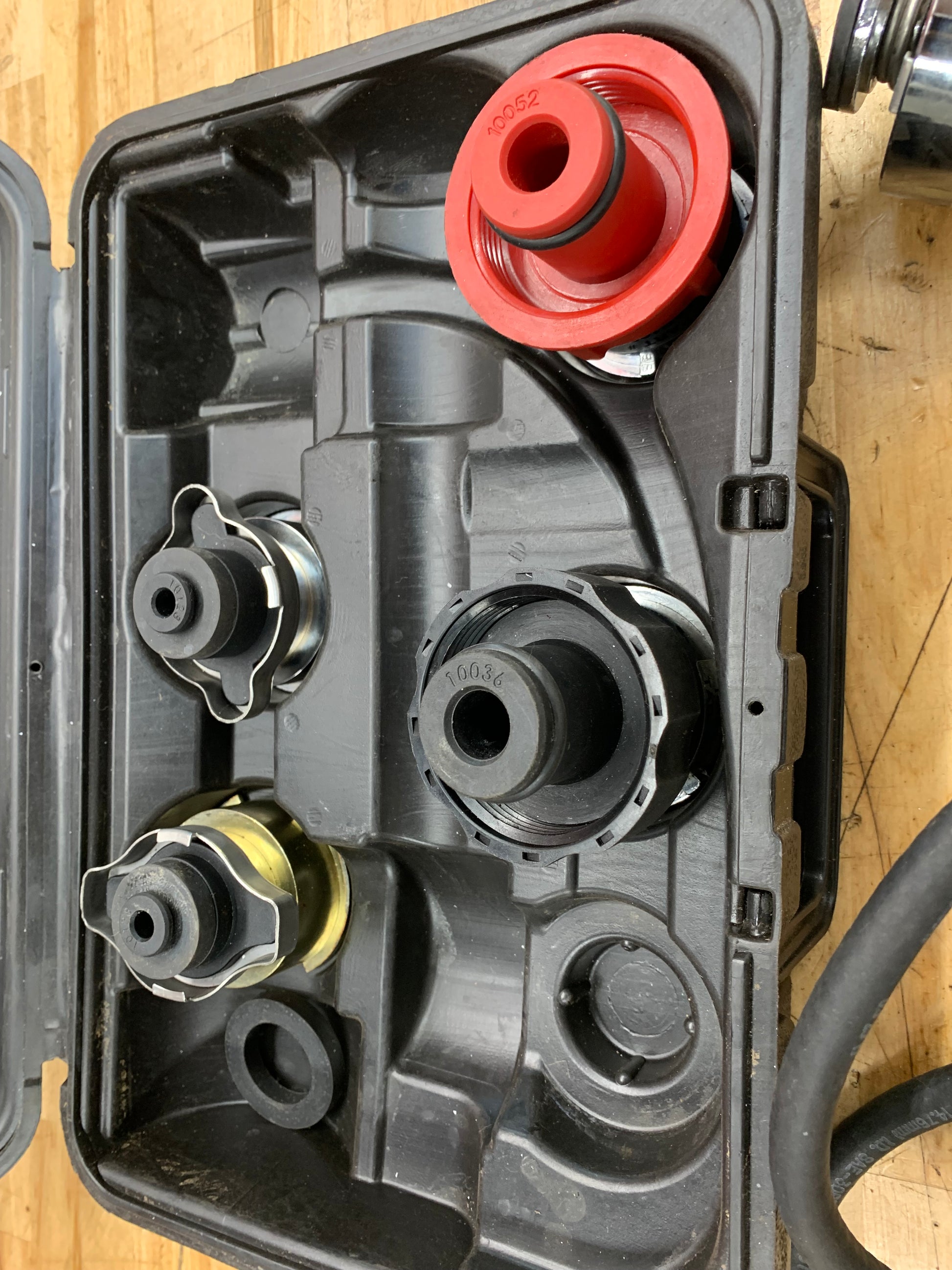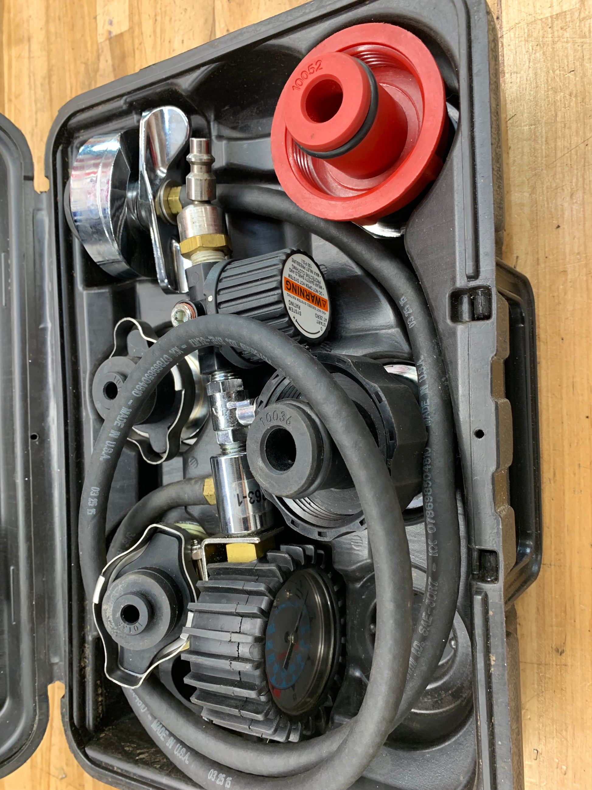For sale is a Snap On cooling system tester. It uses shop air to pressurize the system.