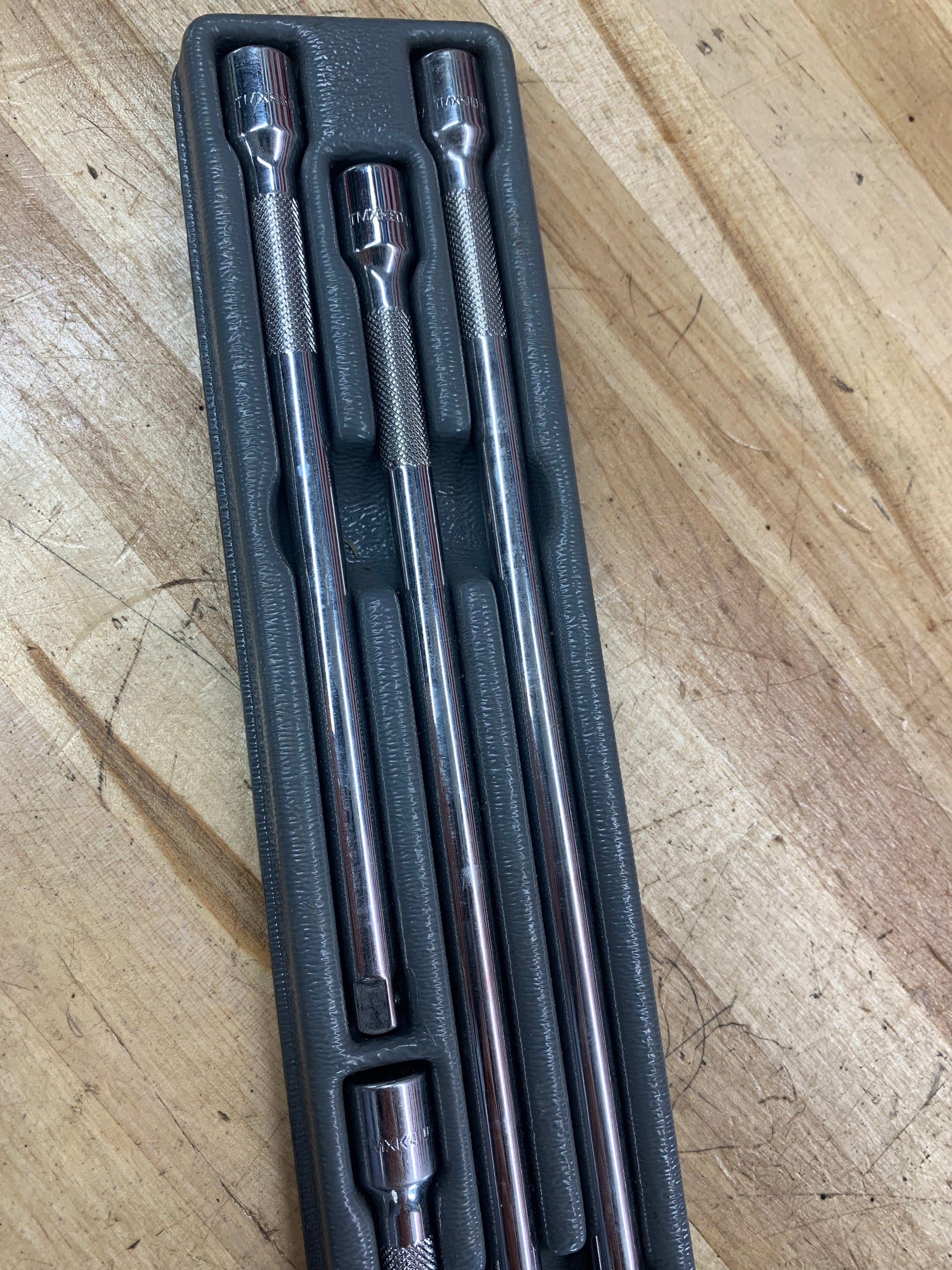 For sale is a tray set of Snap On standard extensions, 1/4" drive. The tools are in good used condition.