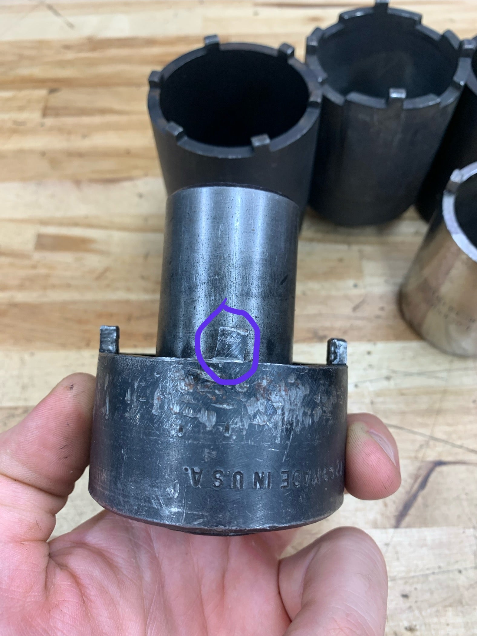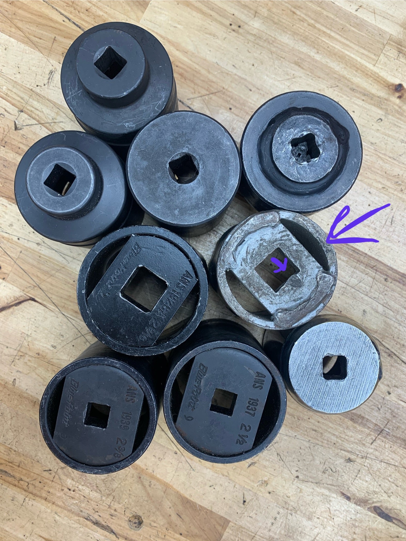 For sale is a 9pc axle spindle nut socket set. Two are Snap on, one is Mac tools, three are Blue Point, and 3 are OTC brand. Two of the OTC brand sockets are slightly damaged. Please see pics for details. Other than that, the sockets are in good used condition.