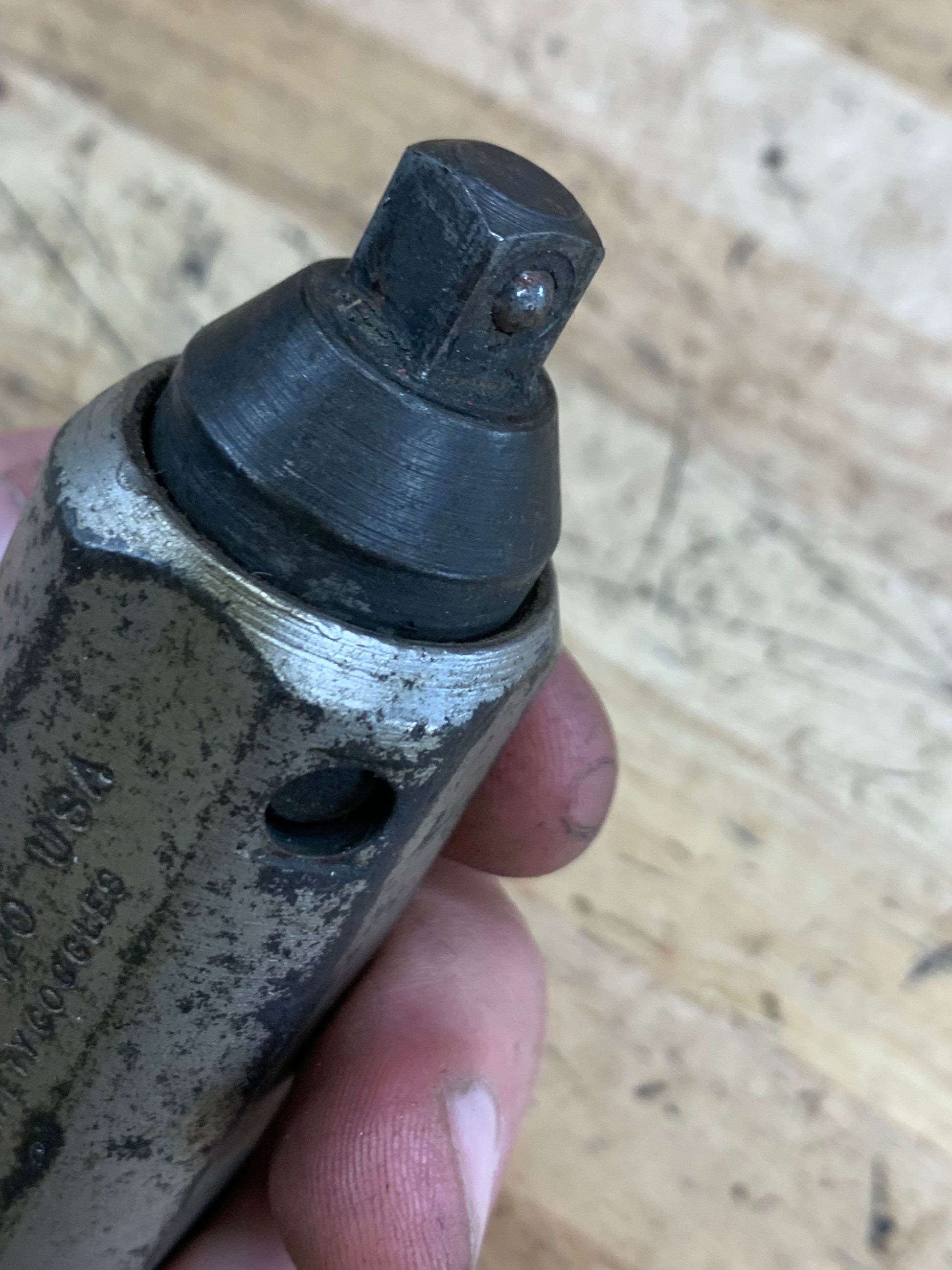 This tool gets struck by a hammer, to deliver a hard hitting blow that gets transmitted into rotational torque to the 3/8" anvil. This tool is typically used with phillips/screwdriver bit sockets, because it can apply a huge twisting impact, without the risk of stripping the fastener like often happens with electric impacts.