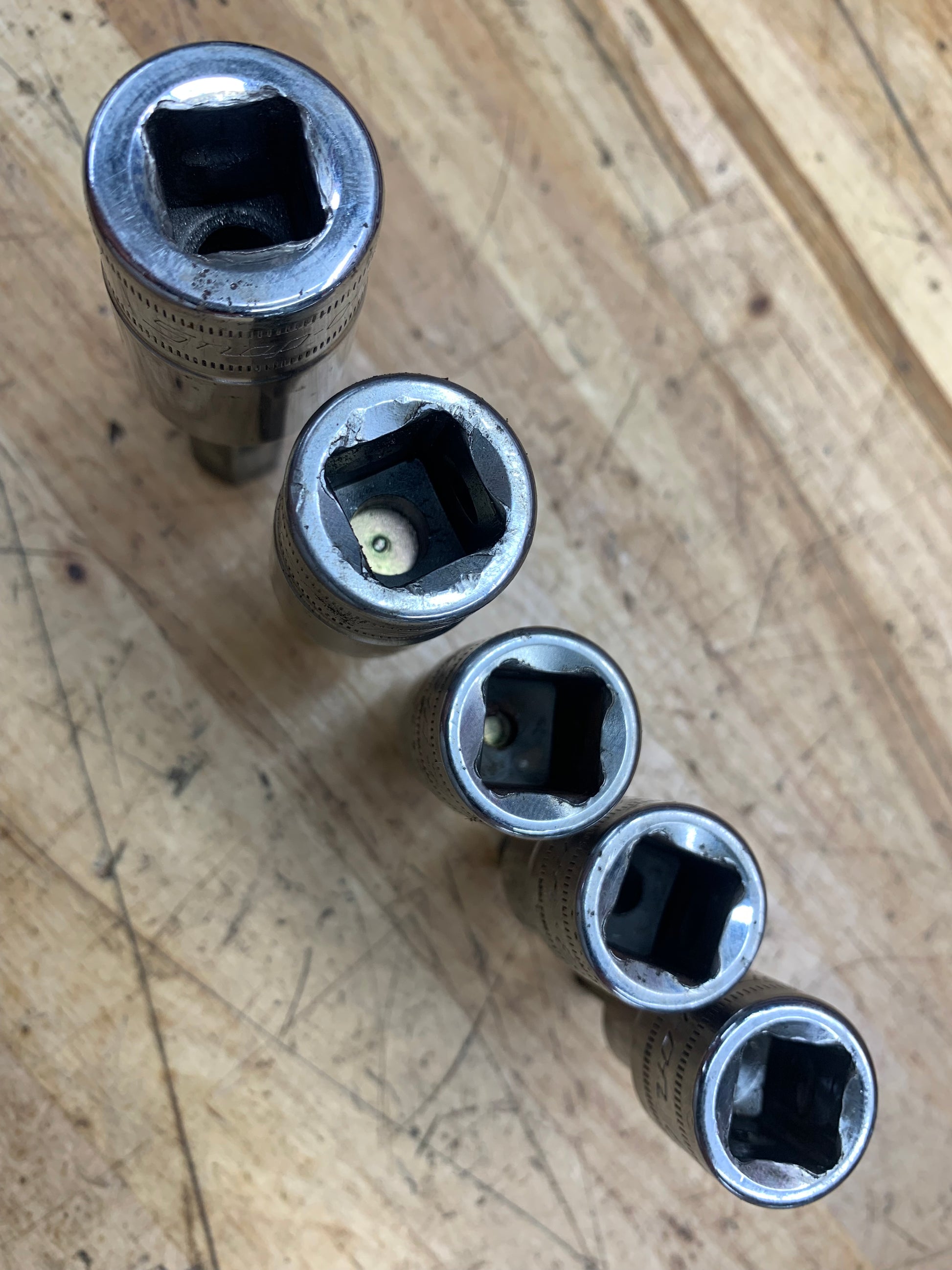 For sale is a 5pc set of Snap On 1/2” hex sockets. They are in good used condition. 6,8,10,12, & 14mm sizes included.