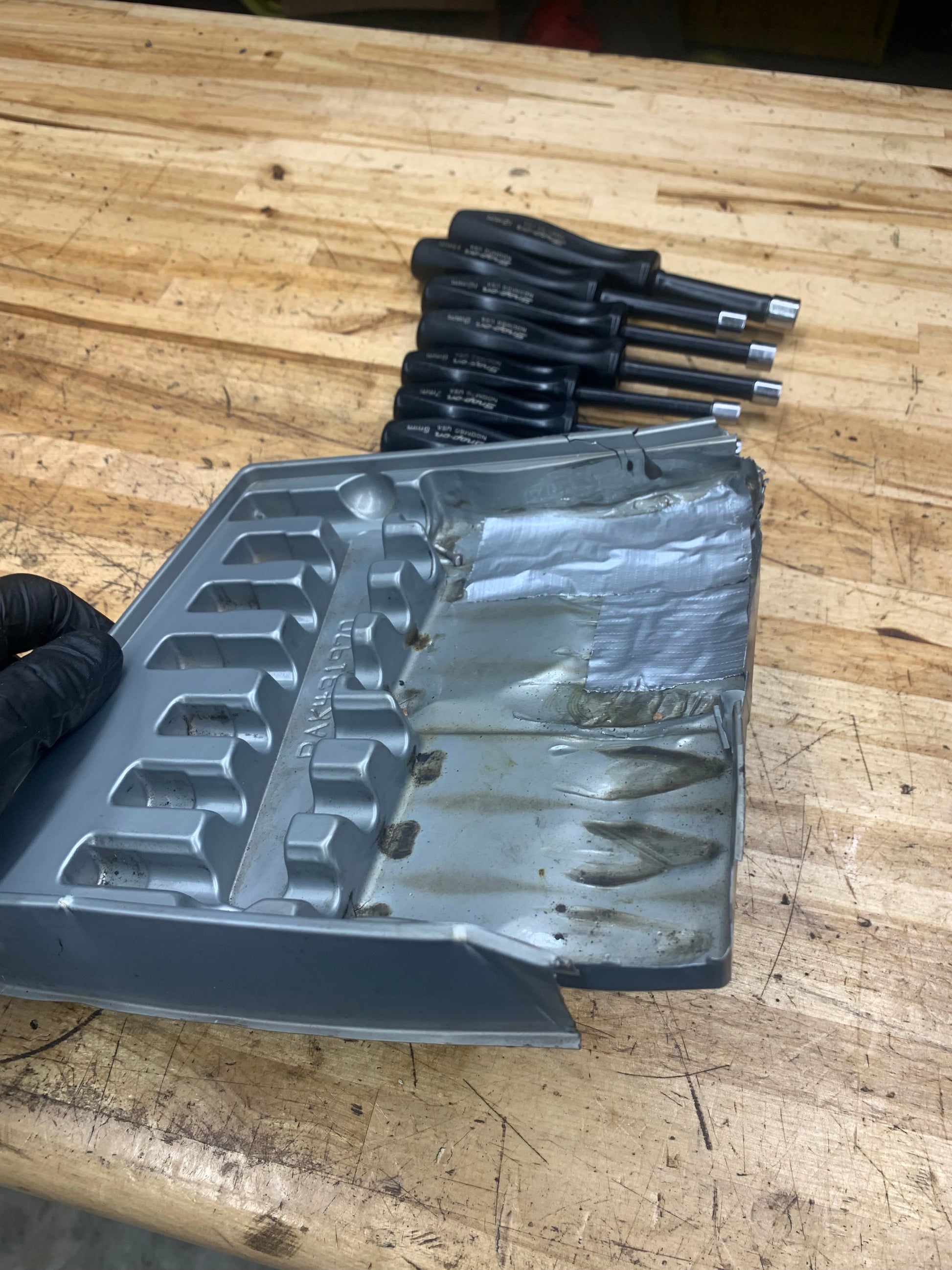 For sale is a 7pc set of Snap On metric nut drivers, 6-12mm. The tools are in good used condition. The tray has some cracks, and tape on it.