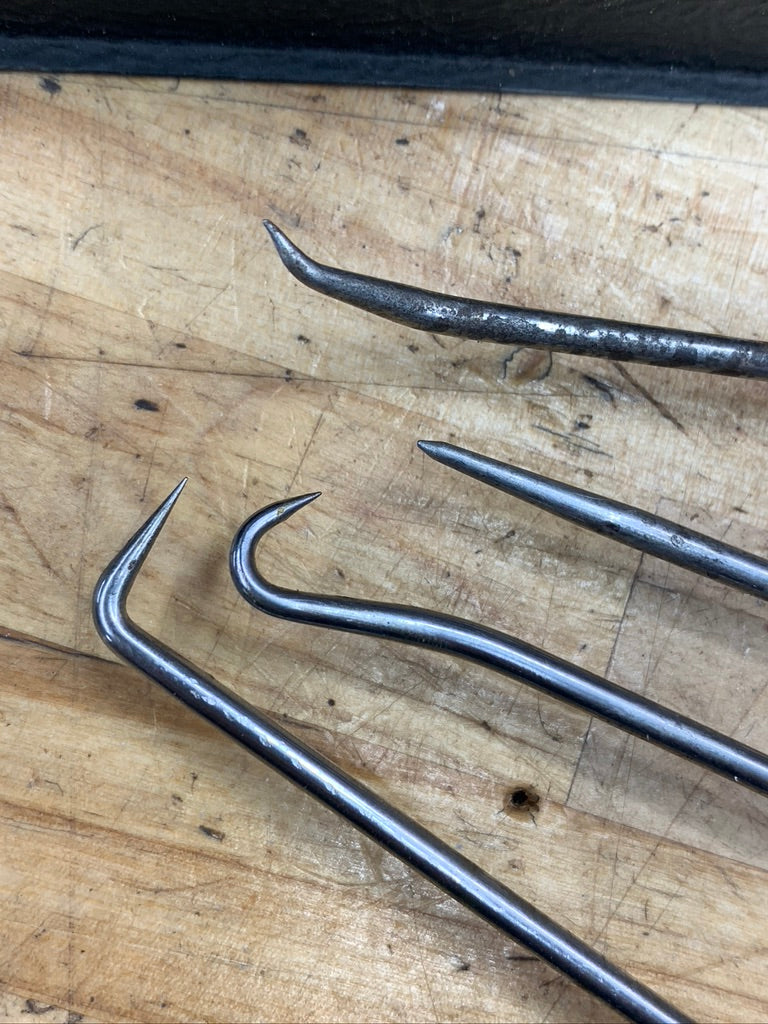 For sale is a Snap On mini pick set, in Pearl Blue. The picks are sharp, they have been lightly used. Comes with an original tray, that was painted to match the hard handles.