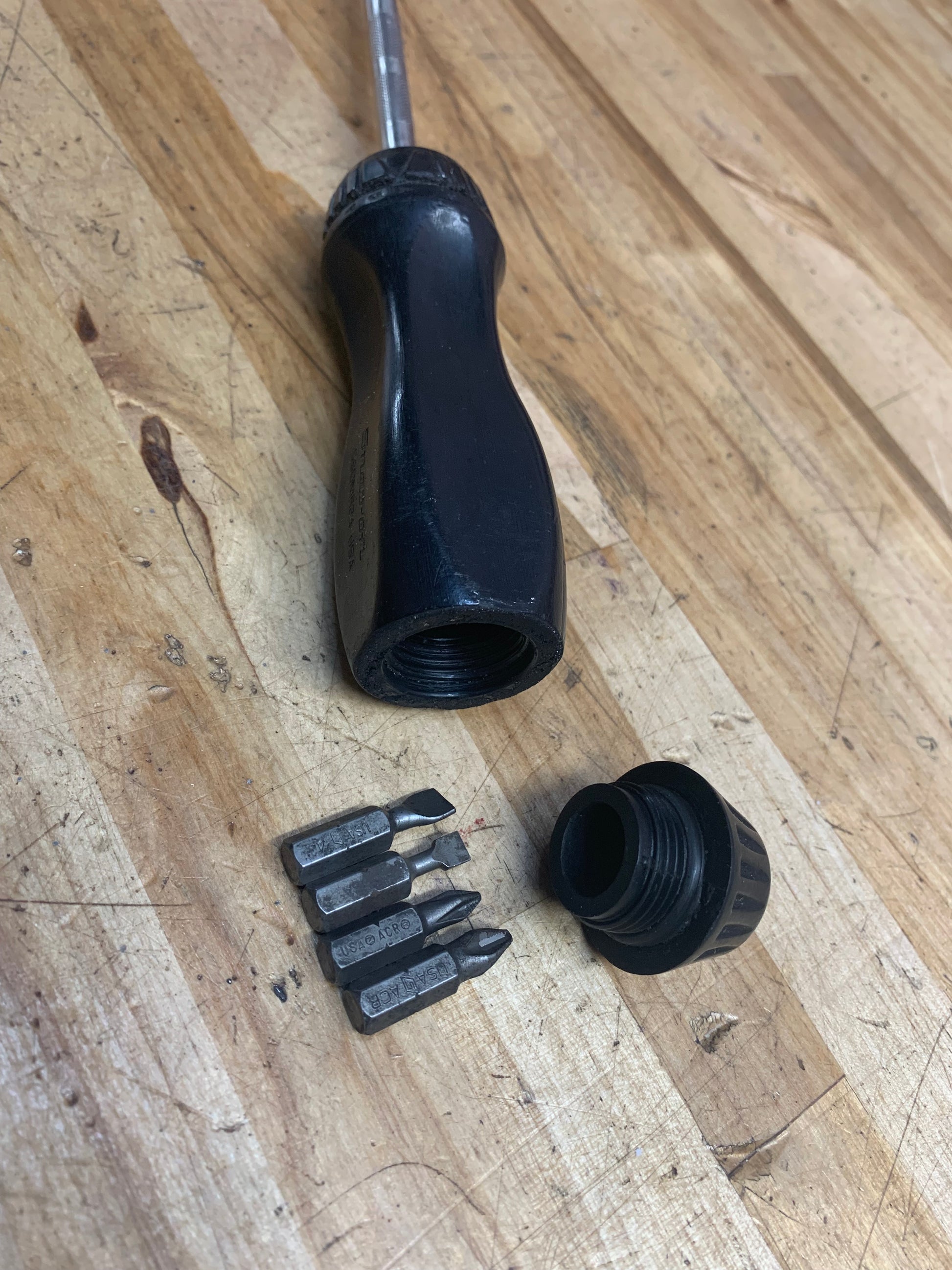 For sale is a discontinued Snap On extra long ratcheting hard handle driver. It shows signs of use, but works great. Comes with 4 Snap On bits.