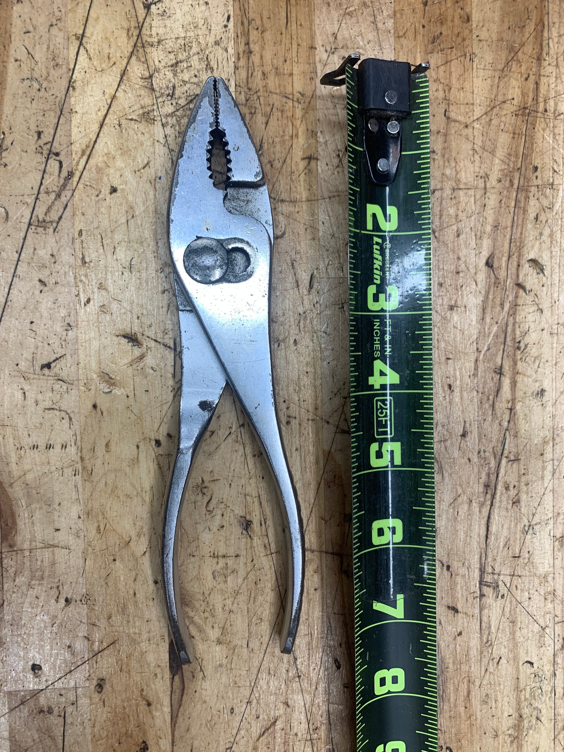 For sale is a vintage Vacuum Grip 1965 pair of Snap On slip joint pliers. They show signs of wear, but still work great.
