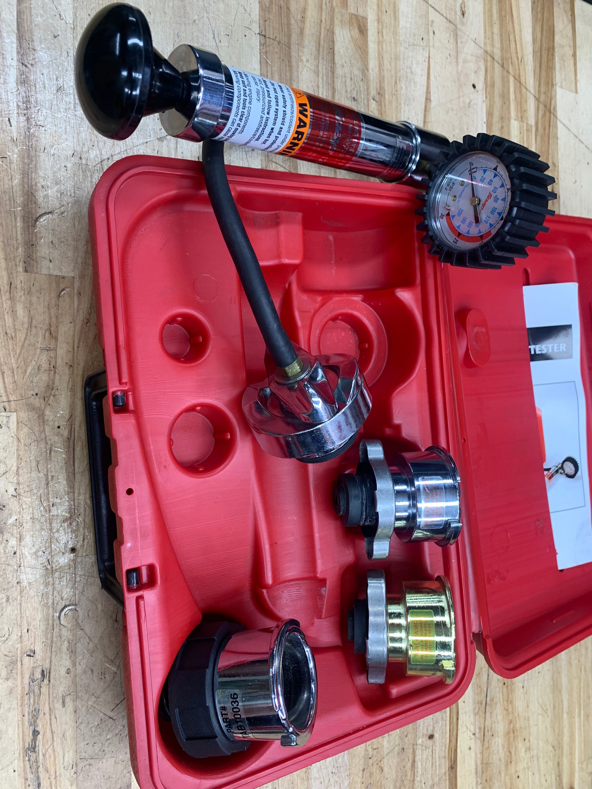 For sale is a Snap On cooling system tester. All original parts are included, none are missing. Comes with original manuals, and blow molded case.