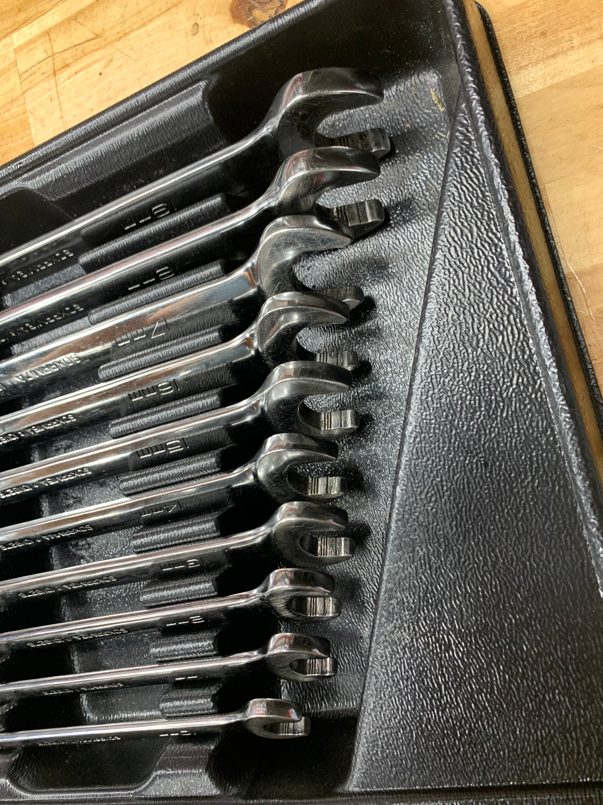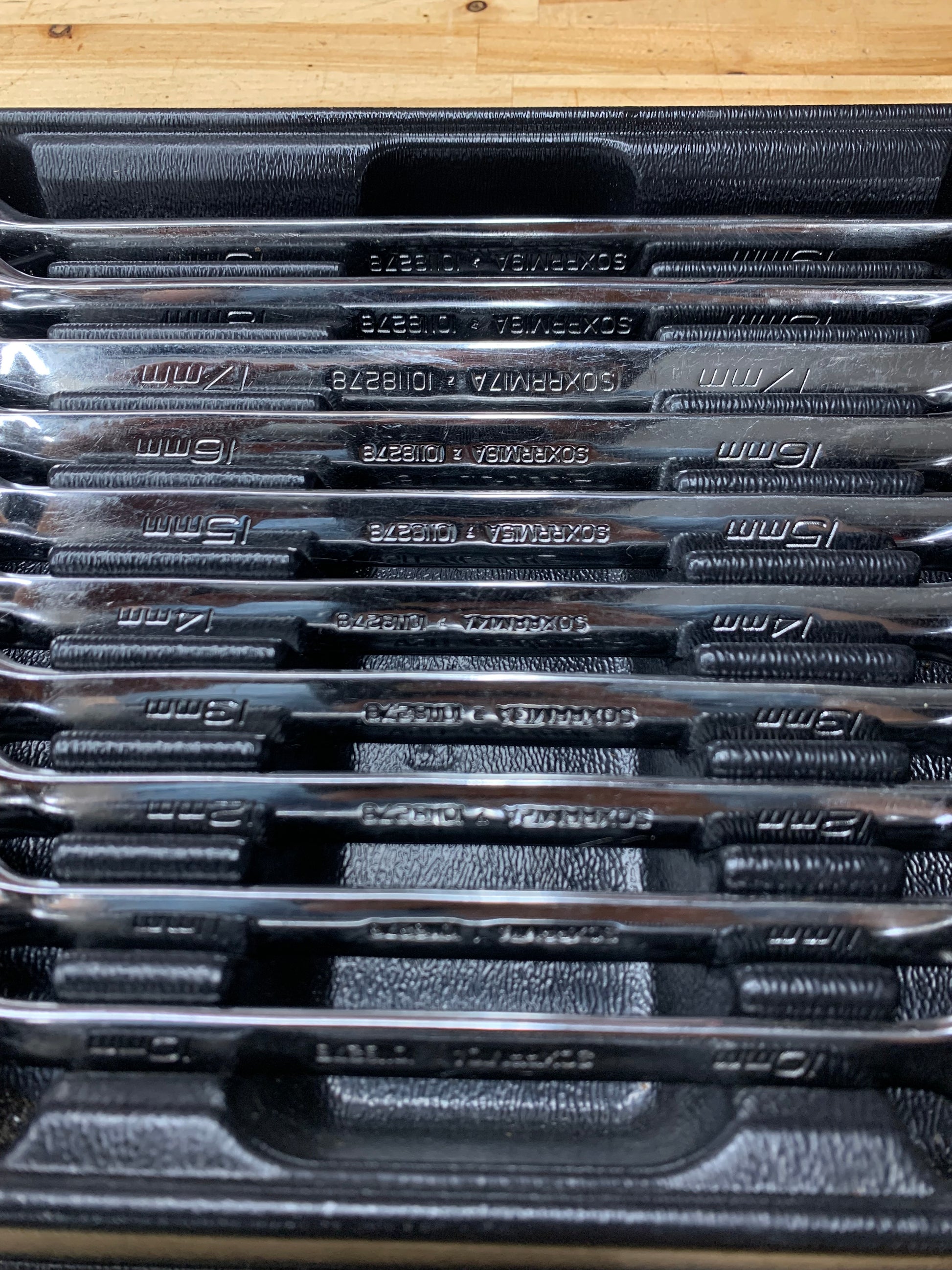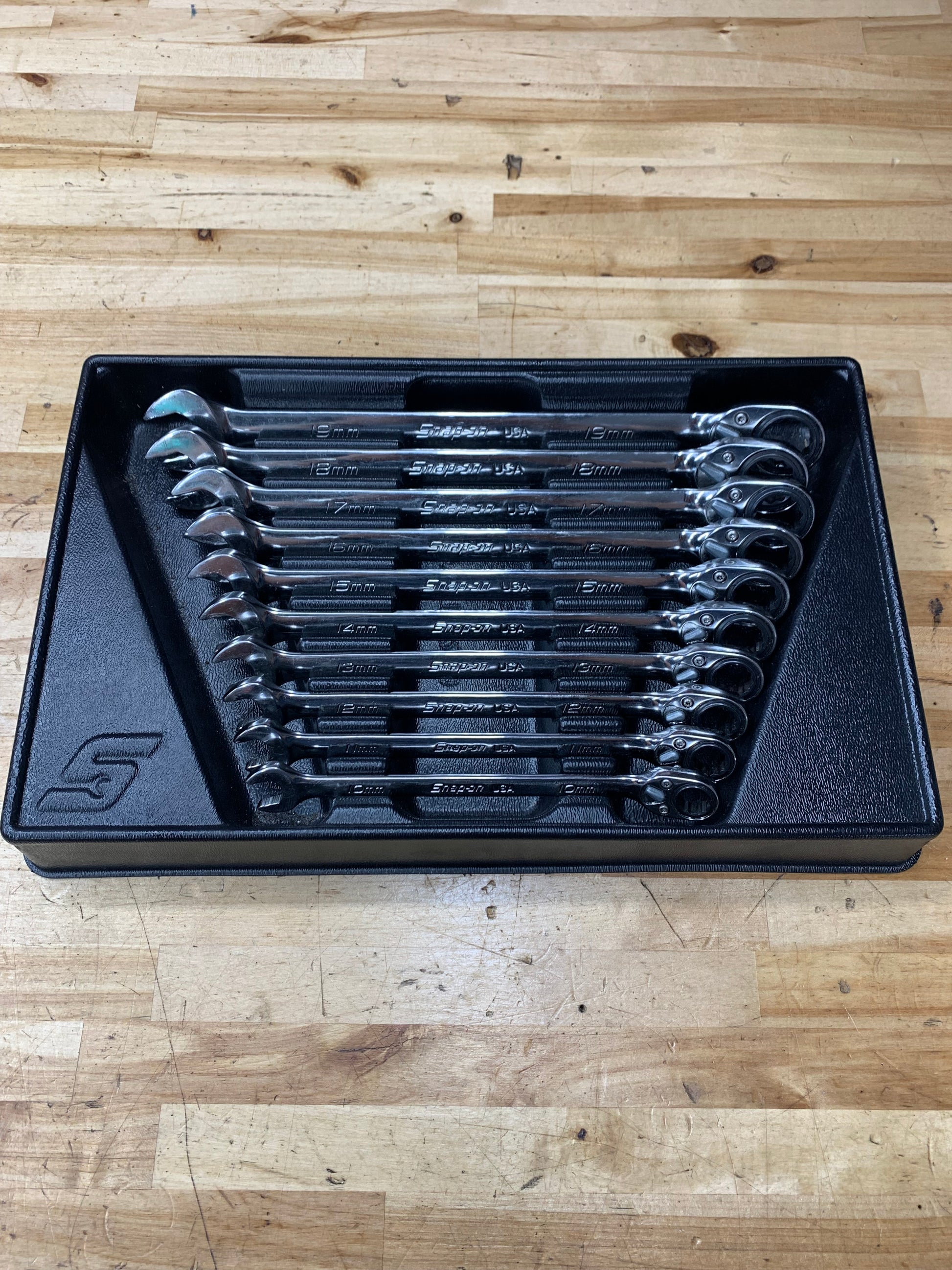 For sale is a metric Snap On 10pc ratcheting combo wrench set, 10-19mm. The wrenches are in excellent used condition. All ratcheting mechanisms work smooth, with offset and direction selector.